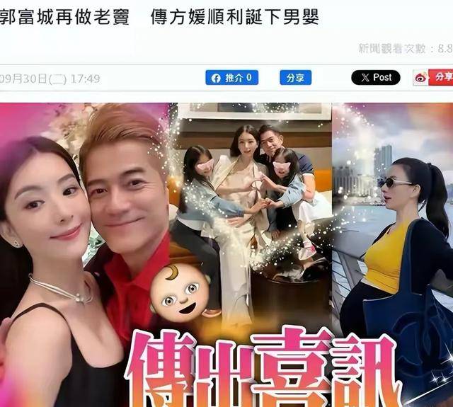 这段时间关于方媛郭富城的三胎已经出生的传闻不少,先是港媒爆料方媛9月底已经生下第三胎,是个男孩。消息传出后,众人都信以为真,毕竟港媒说的有鼻子有眼,方媛的预产期确实就在最近。
