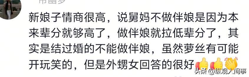不过也有网友认为,rose虽然是大网红,但也是新娘舅妈,如果红包给的太厚,其他亲戚就有点尴尬了。