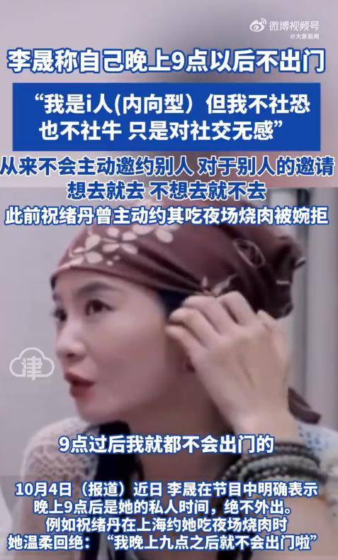 当祝绪丹发出夜场吃烧肉的邀约,李晟说:不去。近日李晟在节目中的回应不去的原因:我晚上九点之后就不会出门啦。”这并非一句简单的推辞,而是她为自己生活划下的一道明确边