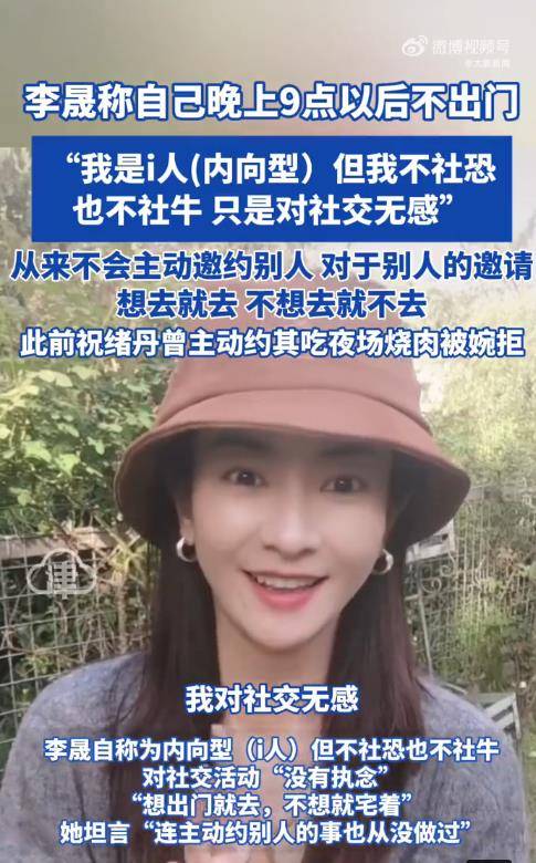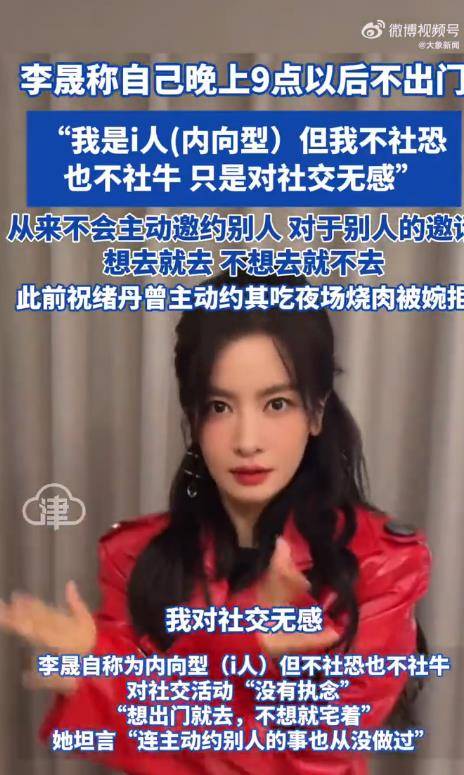 镜头前,李晟坦然将自己定义为“内向型(i人)”,但她迅速厘清了这一标签的误解,她不社恐,也非社牛,而是处于一种清醒的中间地带。对于社交活动,她用“没有执念”四个字精准概括,其核心原则是“想出去就出去,不想出去就不出去”。更令人意外的是,她补充道“从不主动约别人”,这种近乎“佛系”的社交姿态,在争抢资源、拓展人脉被视为生存法则的娱乐圈,无疑是一次反向操作。