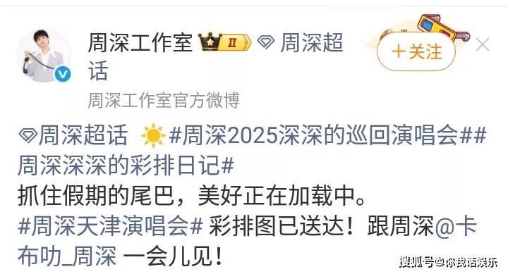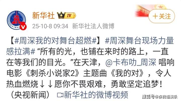 周深演唱会在天津开始后,他的名字再次被观众铭记!因为,在国庆长假期间,歌手周深参加了央视中秋晚会,以及湖南卫视中秋之夜晚会。而在国庆前夕,周深参加了2025大湾区晚会。密集的