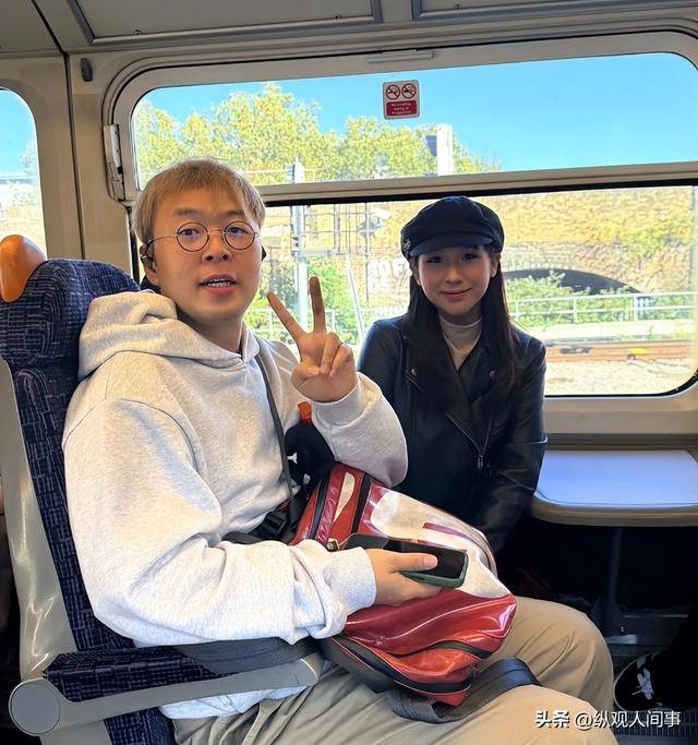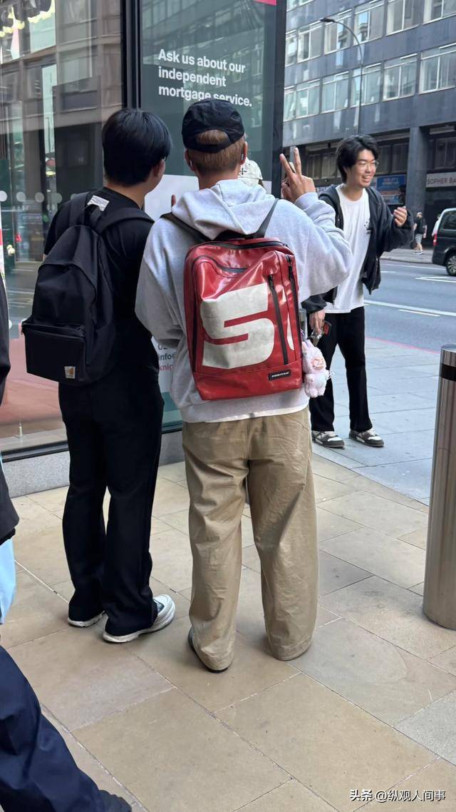 在前往英国的火车中,杜海涛被人偶遇,只见他穿着灰色卫衣、卡其色长裤,背着红色挎包,头上还染成了金黄色,打扮的完全就是一副留学生模样。