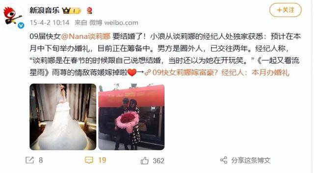 这让不少网友看的一头雾水,谈莉娜不是早在2015年就宣布结婚了吗?