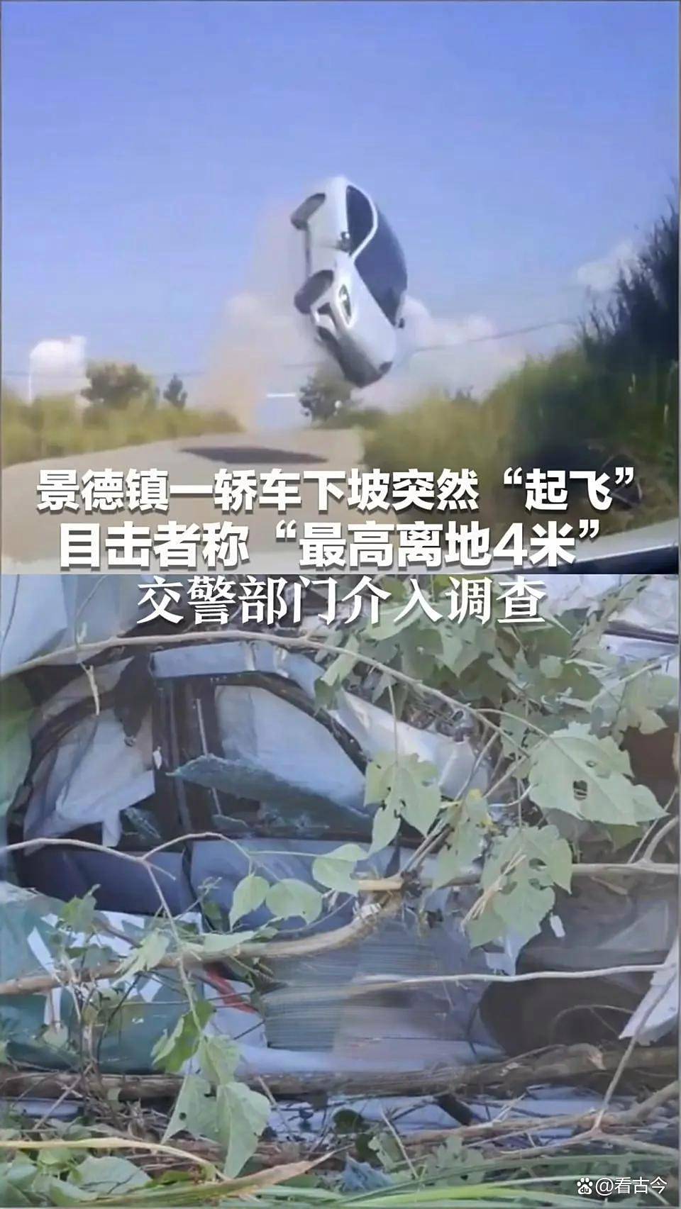10月7日,江西景德镇高铁北站附近上演了一出“速度与激情”现实版——一辆白色轿车突然化身“空中飞车”,从缓坡上腾空而起,最高处离地4米,活像被哈利波特施了漂浮咒。目击者老张举着手机直哆嗦:“这车飞得比我家二哈追快递还高!”