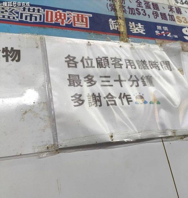 香港餐饮店特殊的规定也不止这一个,还有店铺贴出了要求顾客在店内用餐时间最多30分钟的告示。