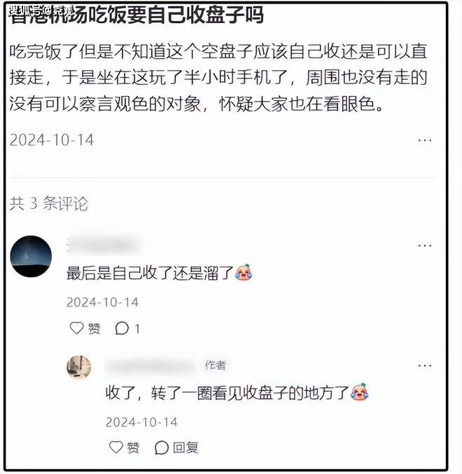 事实上,香港方面常常提醒不到位。一位网友发帖询问,在香港机场吃饭是否需要自己收盘子?该网友表示机场没有提示,也没有任何人可以咨询。还是转了一大圈才看到放盘子的地方。不难看出,中国游客是非常有素质的,只是本地提醒不到位。既然说了入乡随俗,便是理解两地风俗不一样,更要尽到提醒的义务。
