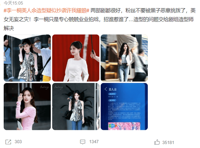 这样的情况出现,很多网友都开始攻击《美人余》,但这并不是李一桐的问题,只不过她在剧中是热度最高的艺人,我们都知道,艺人拍戏的时候,要配合节目组,因为有专门负责妆造的团队,所以李一桐只不过是穿了造型师准备的衣服。
