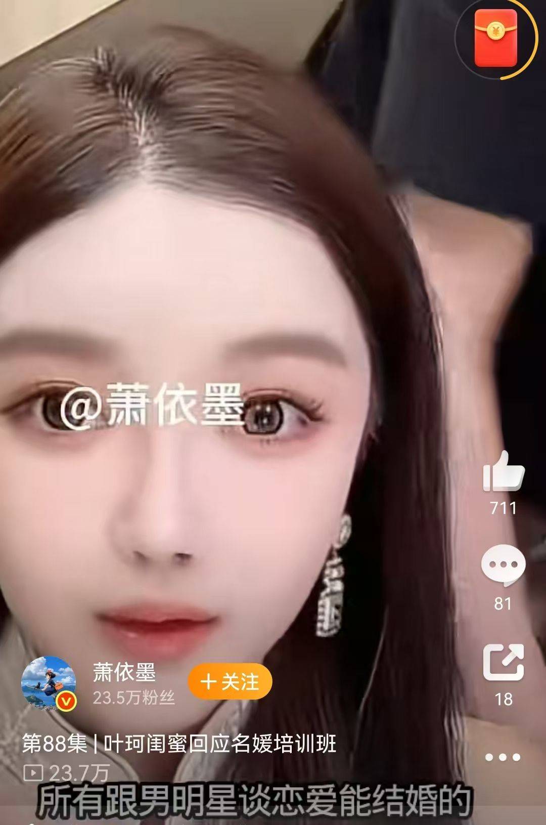 10 月 8 号,叶珂的闺蜜 萧依墨 发了个视频,要澄清“名媛培训班”的传闻。视频里的她,打扮精致、妆容精巧,脸型和叶珂还有几分相似。开口第一句就信誓旦旦地说:“