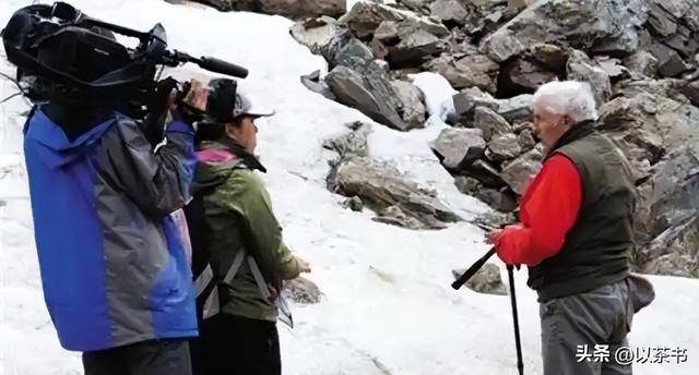 2011年,央视《地理中国》栏目找到他拍摄纪录片,73岁的他,拄着登山杖,带领摄制组爬上4000米高的冰川谷底,双脚麻木也不停歇。