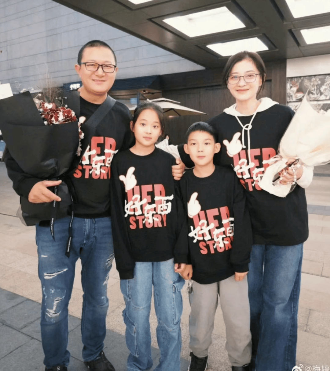 38岁那年,梅婷生下了女儿“快快”,两年后又意外怀上儿子“阳阳”。