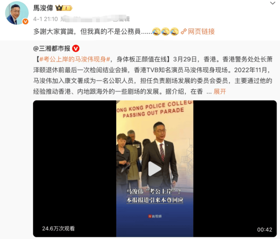 这个“公职人员”的头衔,被不少内地网友误解为“考公成功”。