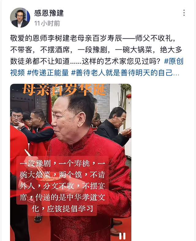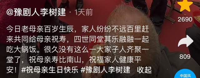 10月7号,知名豫剧表演艺术家李树建在老家汝州为母亲庆百岁大寿,由于一些细节的原因,所以惹来了诸多网友的争议。不过孝道自古以来都是中华民族的传统美德,以这样的形式宣扬孝道