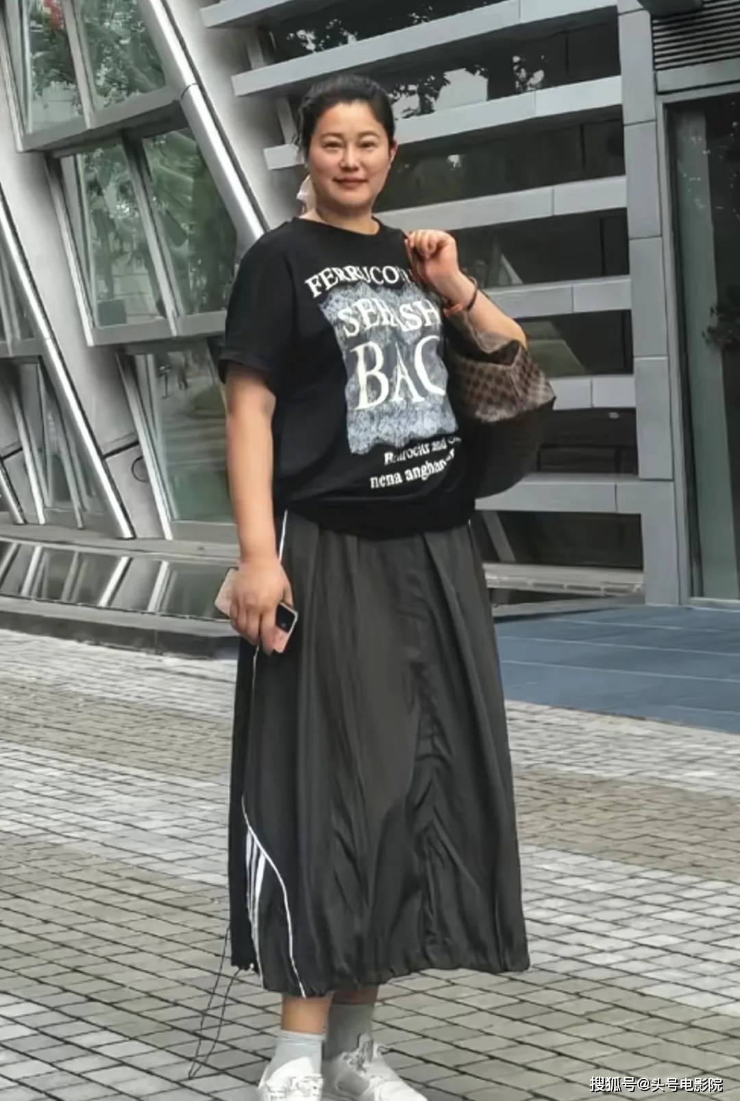 于娜反而因为这次的穿搭配是上衣配裤子,更加显得身形圆润,昔日的纤细美腿已经消失。