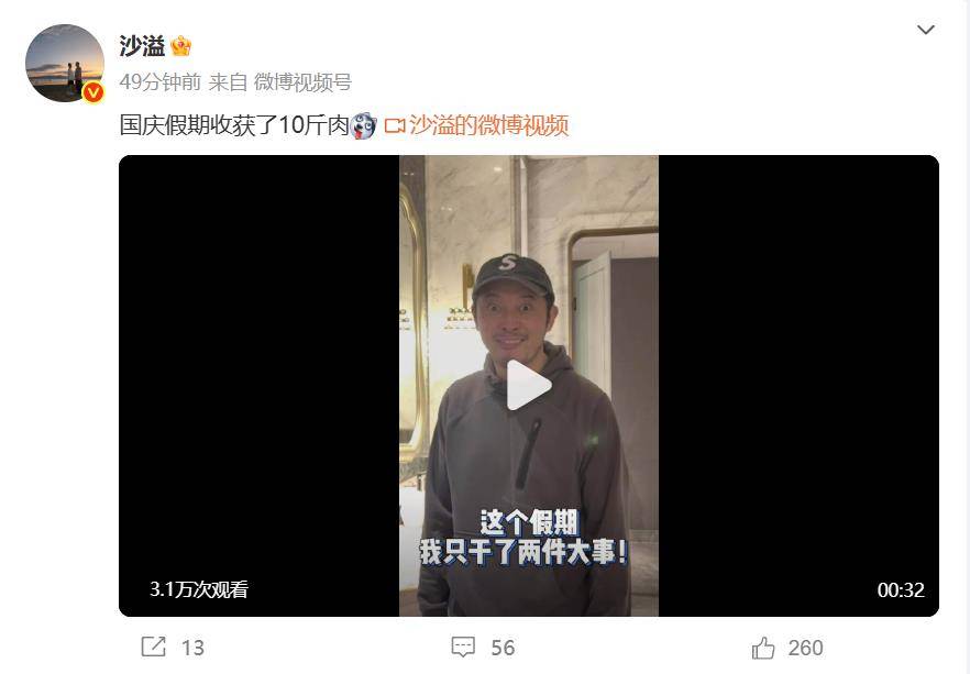 2025年国庆假期刚过,演员沙溢的一条微博就直接炸出了无数“同病相怜”的网友。10月9日,他在微博坦然公布了自己的“假期战绩”:“国庆假期收获了10斤肉”,这波耿直操作瞬间引发全民共鸣。