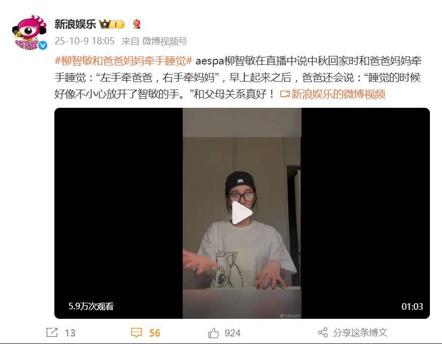据10月9日媒体报道,中秋团圆之际,韩国女团aespa成员柳智敏在直播中分享的家庭日常,意外掀起了一场关于亲情界限的全民讨论。她透露回家后会与父母同床而眠:“左手牵爸爸,右手牵妈妈”,清晨父亲还会温柔解释“睡觉时不小心松开了手”。这番描述瞬间点燃舆论,有人直呼“温馨治愈”,也有人质疑“25岁是否该避嫌”。
