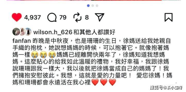 S妈没有。她不仅没有邀请这对小姐弟一起过节,反而亲手做了一对抱枕,送给了另一个人——大S的好友,范玮琪。