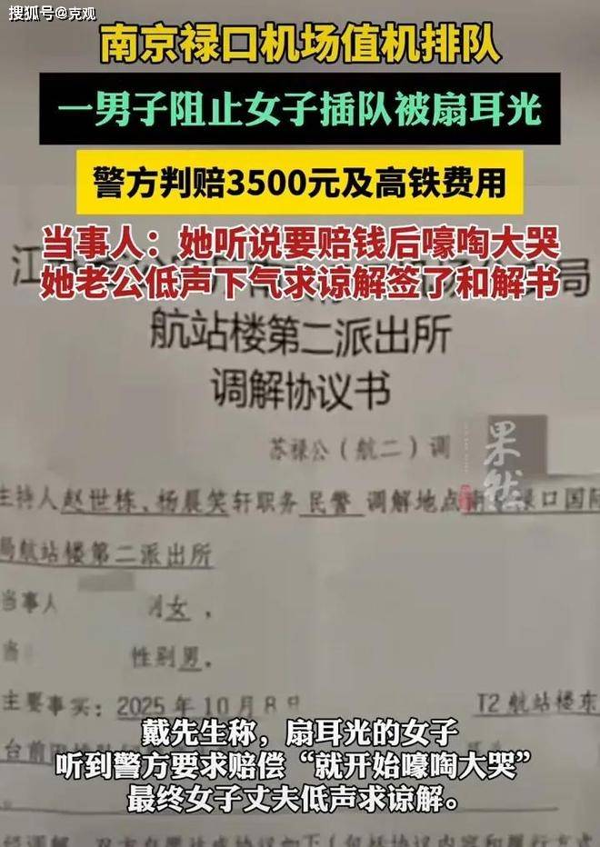 据新京报报道,10月9日,南京禄口机场有乘客发视频讲述:在机场值机排队的时候,遇到了一名女子插队,上前阻止后反被对方辱骂扇耳光。