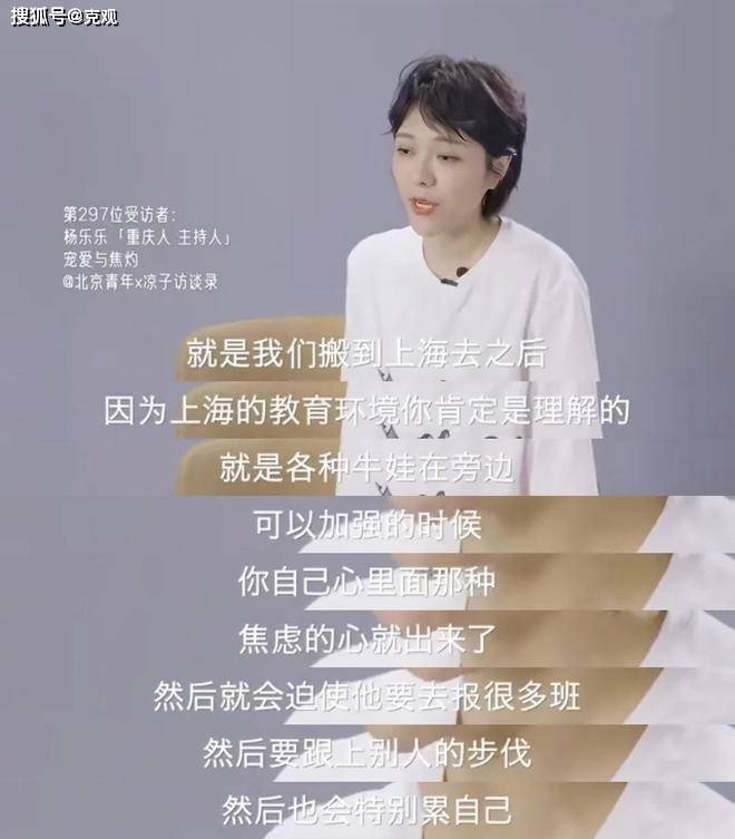 至于杨乐乐所说的家庭上的压力,也有可能和孩子学习有关,杨乐乐表示搬到上海后后,看到这么多牛娃十分焦虑,会迫使孩子报班跟上他人的步伐,自己也特别累。