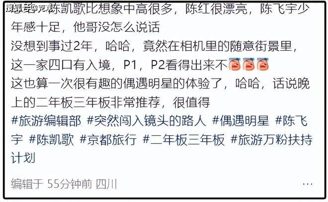 国庆小长假已经结束,又到了复盘的时刻。有网友在回顾国庆旅途时,无意中翻出了两年前在日本偶遇陈凯歌一家的画面,谈及了和他们的互动直呼印象深刻。该网友称当时在日本京都夜