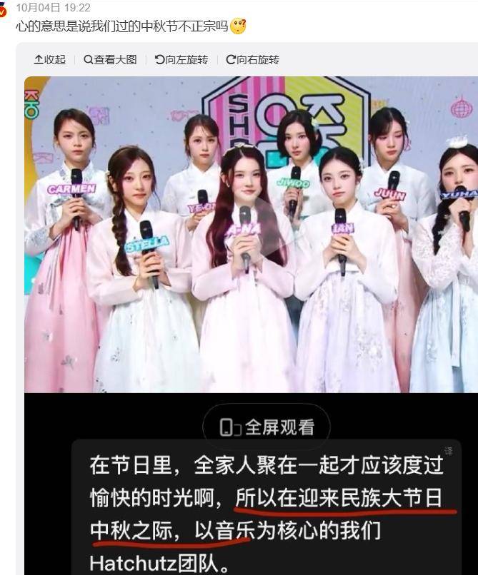可她们的发言却是怎么看都不对,说中秋节是韩国传统节日,还强调穿上韩服后感觉更正宗。