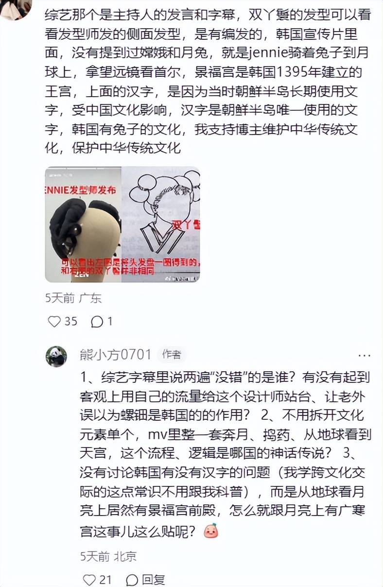 金珍妮这次被质疑后,以前疑似偷文化的劣迹也被扒了出来,她曾梳过类似中国传统双丫髻的发髻,主持人说螺钿是韩国代表时,她也在一旁附和。