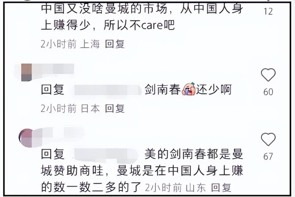曼城球队的中国球迷不少,还有不少中国赞助商,还敢这样做,似乎是不把中国球迷和赞助商们放在眼里。