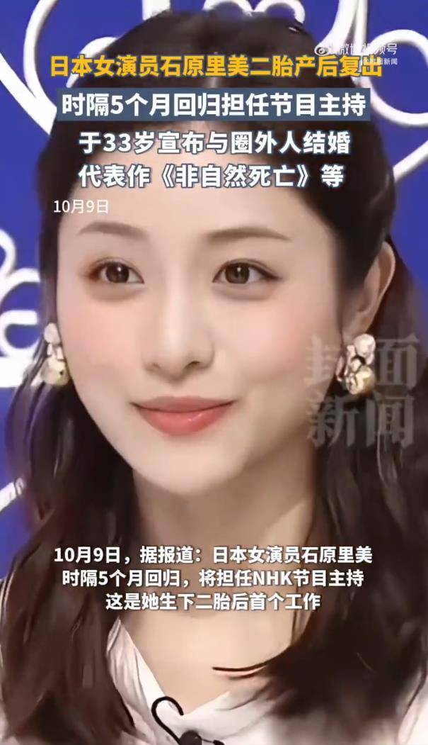 时隔5个月,38岁的日本国民女神石原里美再度回归公众视野——这一次,她以NHK节目主持人的身份宣告产后复出。短短三年内完成结婚、连育两子、两次高效复出的节奏,让