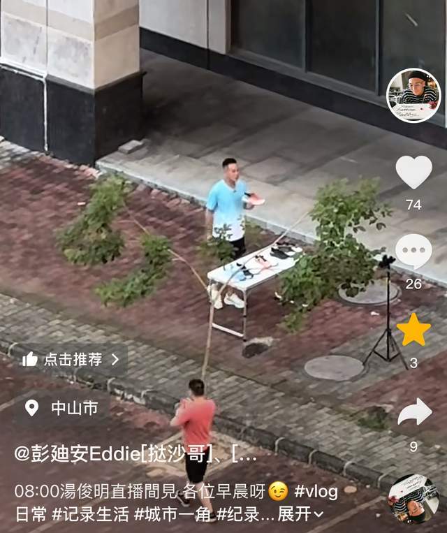 从曝光的画面中不难看出,他所偷拍的镜头正是汤俊明直播卖运动鞋的画面,时间位于早上7点多,而他现身直播间的时间则是8点整。