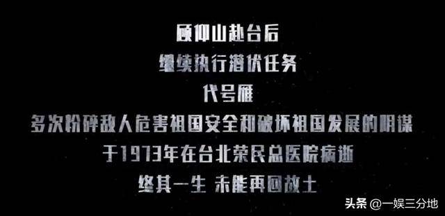 顾仰山去了台湾之后,也一直在执行潜伏任务。