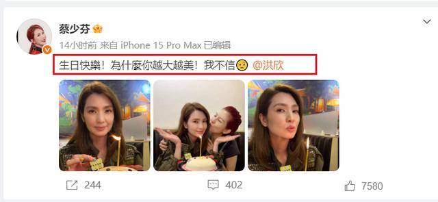 如今,30多年过去了,洪欣又变成什么模样了呢?10月9日,是洪欣53岁生日,好闺蜜蔡少芬特意抽出时间替其庆生,并收集了几张美照分享到了自己的社交平台。不过,从发文中,蔡少芬可谓是非常的“嫉妒”,称为什么你越大越美,我不信。