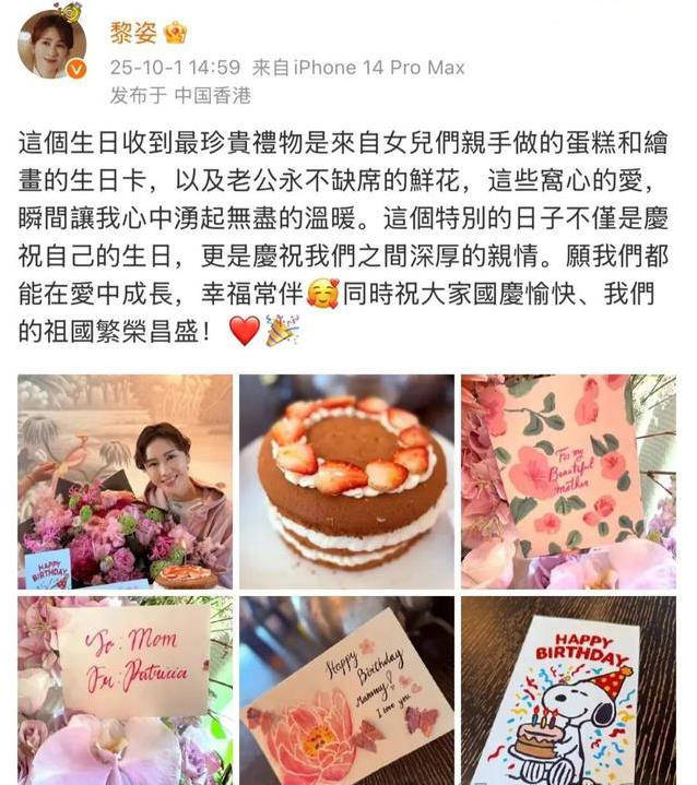 除了个人美貌,黎姿与家人的互动也同样温暖。生日照片中,她搂着父母,亲昵模样宛如小女孩,温柔而自然。父母脸上洋溢的幸福笑容,也为整张照片增添了满满的家庭温度。尤其是母亲,气质优雅,与黎姿并肩站立时,竟有种姐妹花的既视感,让网友直呼:“这一家子的颜值基因也太强了,每个人都像画中走出来的一样。