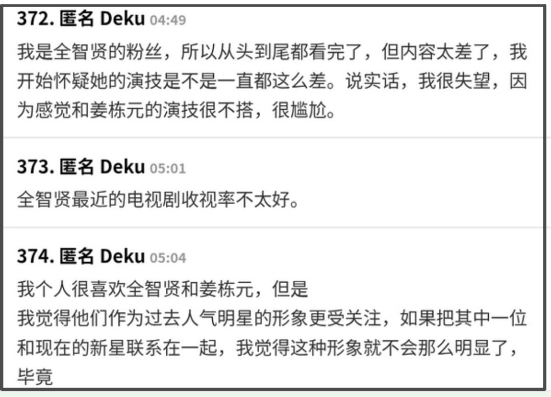 中国网友也认为属于全智贤的时代已经过去了,失去新鲜感的她演技没有提高,年龄上来之后的面相也不再讨喜,没有观众缘。