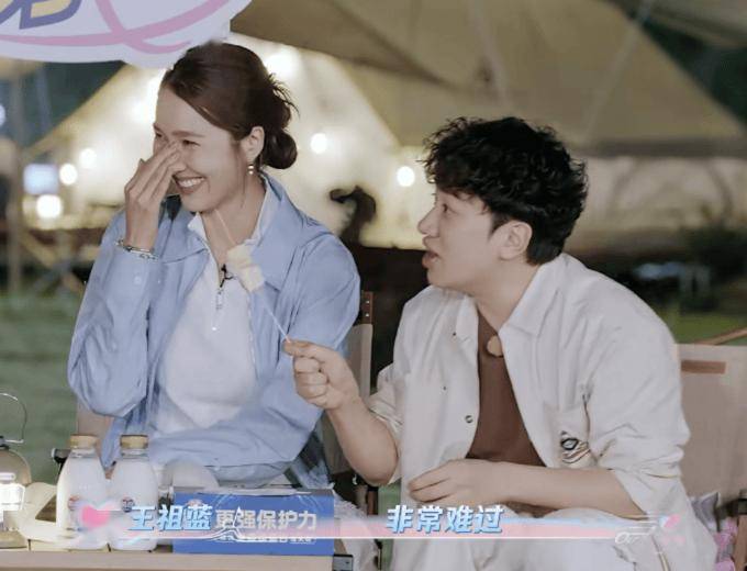 这时李亚男轻轻拍了拍王祖蓝的肩膀说:“那个绯闻是假的。”王祖蓝笑着回应:“现在当然知道是假的了,你可别现在告诉我那是真的。”一句话引得全场爆笑。