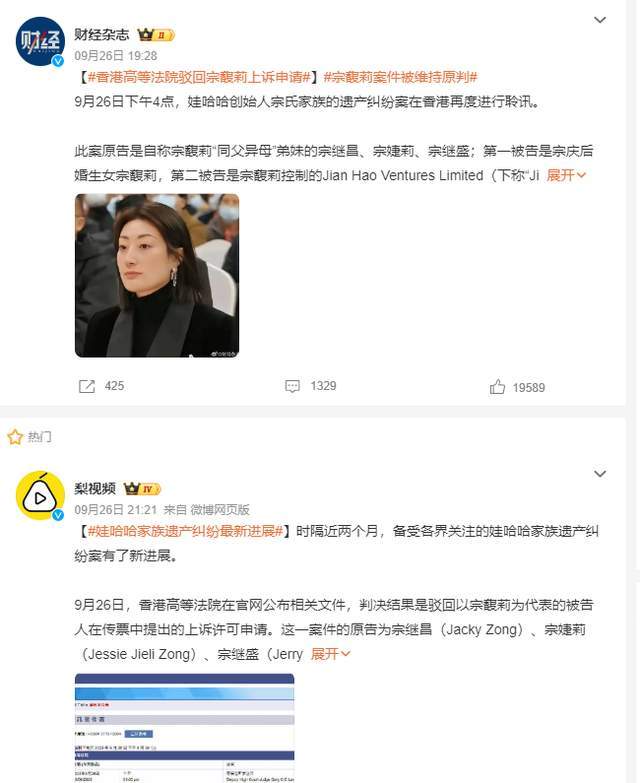 此后经过香港法院的审理,驳回以宗馥莉为代表的被告人在传票中提出的上诉许可申请。这一结果也就意味着宗馥莉已经输了一半,在杭州的诉讼官司,至今也没有一个明确的结果。