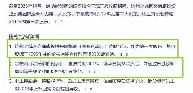 公开资料显示,娃哈哈集团的股权架构非常明了,最大的控股便是杭州上城区文商旅投资控股集团。