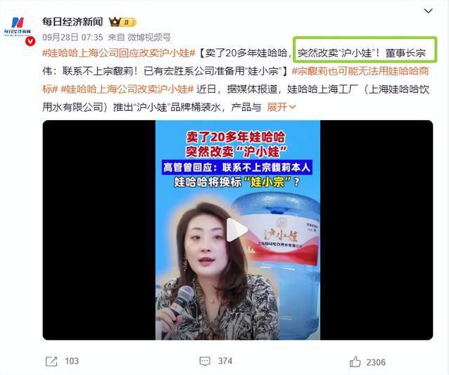 随后证实,娃哈哈品牌到期而不能继续使用娃哈哈这个品牌,只好另起炉灶。而这一行为也与之前的传闻对应。