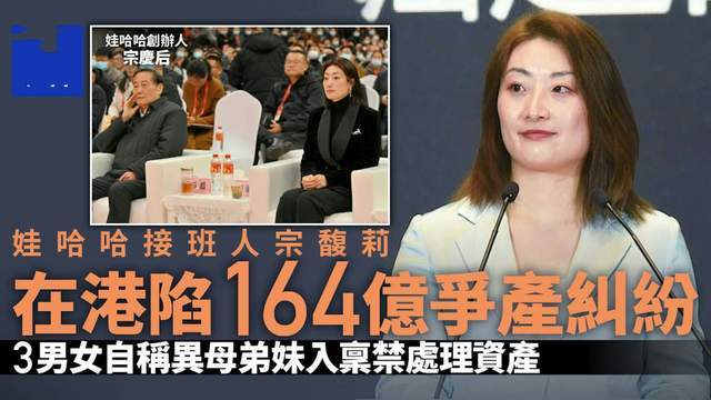 去年12月,宗馥莉因为资产纠纷问题在香港被起诉,原告名为宗继昌、宗婕莉、宗继盛,且三名原告是宗馥莉同父异母的弟妹。