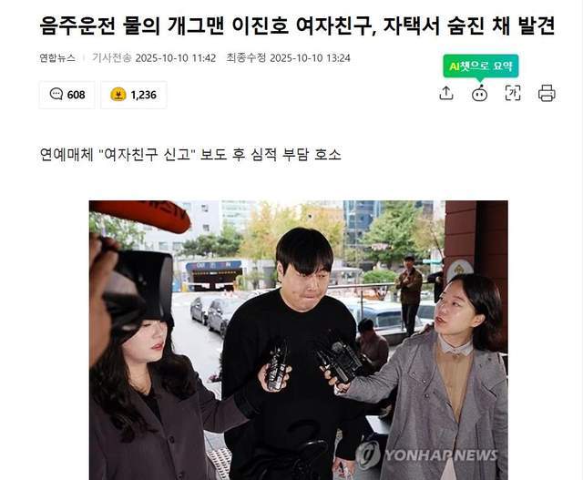 这起悲剧的源头,可追溯至上月24日凌晨。李陈镐在血液酒精浓度达0.11%(远超吊销驾照标准)的状态下,从仁川驾车至京畿道杨平,最终因涉嫌违反《道路交通法》被捕。然而,事件并未止步于法律层面——某娱乐媒体在报道中直接曝光了报案人A某的身份,使她瞬间被推至舆论风口浪尖。