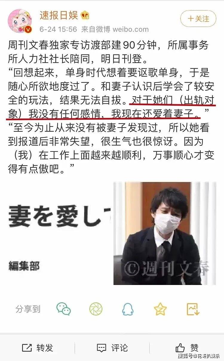 事情发酵后,渡部建的回应更是让自己火冒三丈,说他深爱的依旧是佐佐木希,为了保护妻子,已经选择了比较安全的玩法,对他们也没有任何感情,被发现是始料未及的。