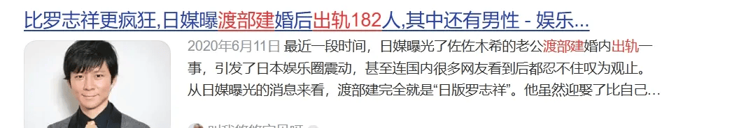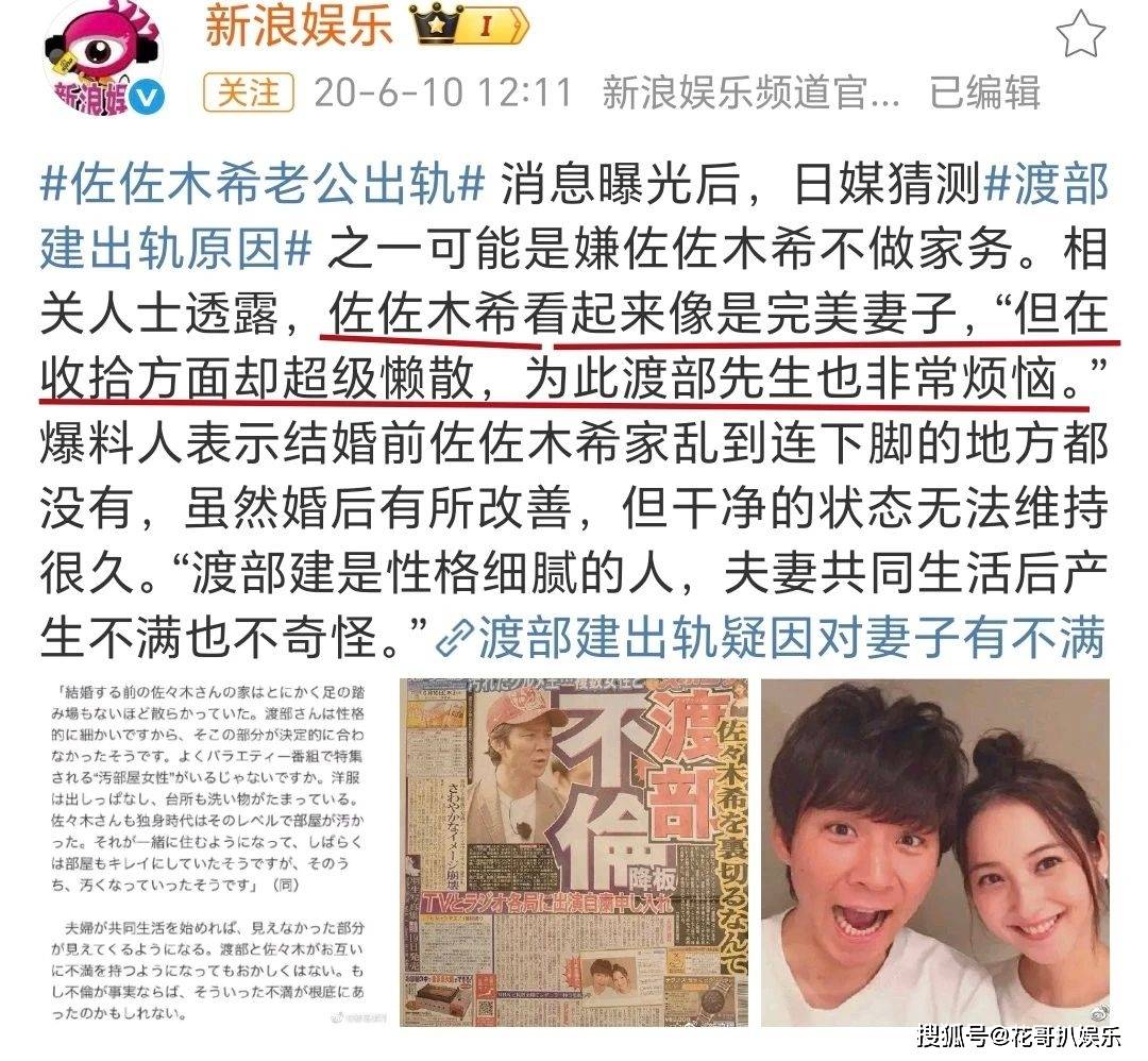 人都已经烂成这样了,没想到还能更烂。之后渡部建说自己出轨只是因为佐佐木希不做家务,让他非常烦恼。