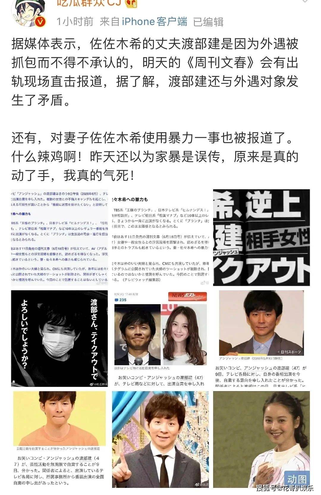 更恶心的是,渡部建还家暴,真的可怜佐佐木希乐。