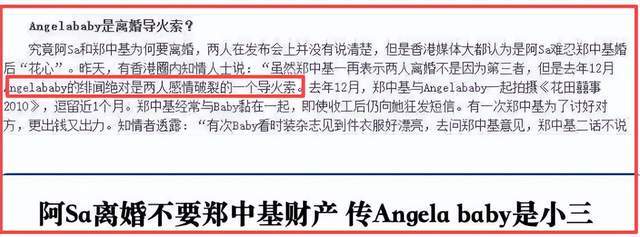 当年阿Sa和郑中基官宣离婚,两人说他们之间没有第三者。