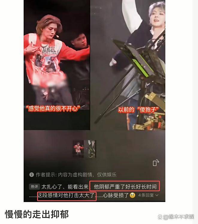鹿晗的困境不仅来自身体,心理层面同样让人揪心。有粉丝爆料,他已经长期陷入抑郁状态,疑似与感情问题有关。有粉丝对比他以往的舞台表现,称过去的鹿晗是开朗的“傻狍子”,而如今却能明显感受到他内心的不快乐,真心希望他能尽快走出阴霾。