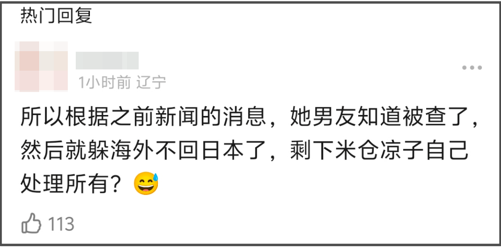 顺道一提,米仓凉子的外籍男友早早离开日本了,搜出违禁品的公寓是男友和米仓凉子一起住的,风波后续如何发展,还得等更具体的调查。