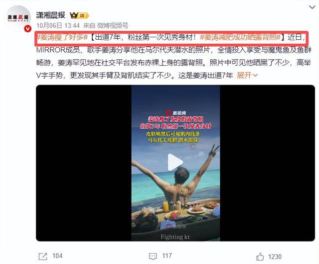 出道七年,这是姜涛第一次公开向粉丝们展示身材。