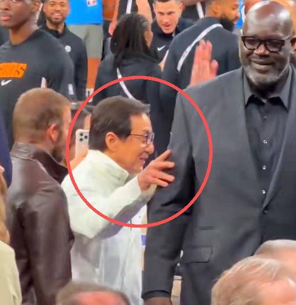 在内场观赛的时候,就连NBA巨星奥尼尔都主动来跟成龙大哥打招呼。