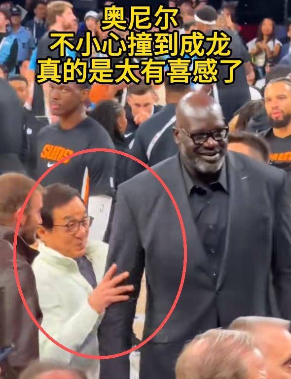 本来只是一场小小的意外,可成龙大哥在被撞了之后,竟然还贴心的给奥尼尔拍了拍胳膊,就好像奥尼尔的胳膊被他撞“疼了”一样,这一幕属实有些喜感。