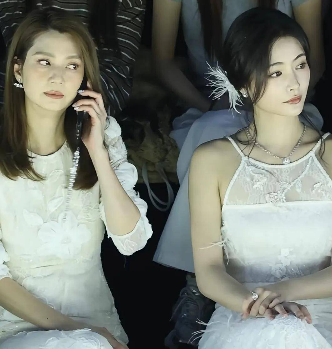 接着看洪欣和许佳琪的同框,两位年龄相差24岁,怼脸的同框图能看到一些年龄差,实际并不大。洪欣面部皮肤除了法令纹问题,其他都很紧致自然,自带成熟韵味。而30岁的许佳琪则还沉浸在不知所谓的噘嘴状态,再加上眼神涣散迷茫,整个人看起来很混乱,完全不如松弛的洪欣亮眼。
