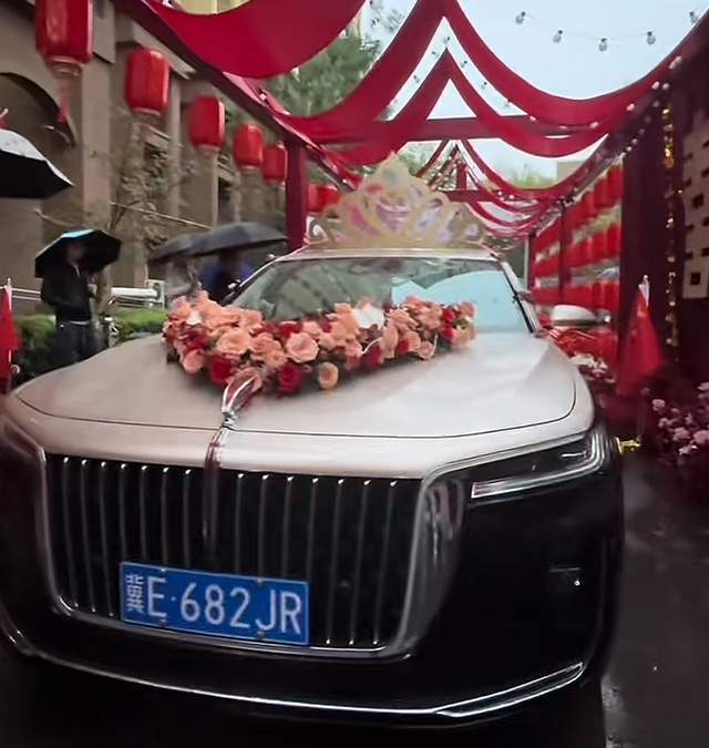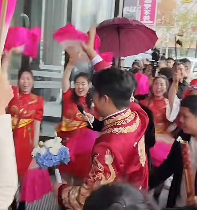 据悉,解清帅此次婚礼采用的车队是红旗H9,前前后后差不多有10多辆。到达现场之后,解清帅便在众人的拥护下前往酒店,在酒店的门口可以看到两个特色,第一个便是舞狮,第二个则是秧歌队,虽然规模不大,但现场气氛却非常足,尤其是秧歌队,拿着粉色扇子,不停地呼喊。
