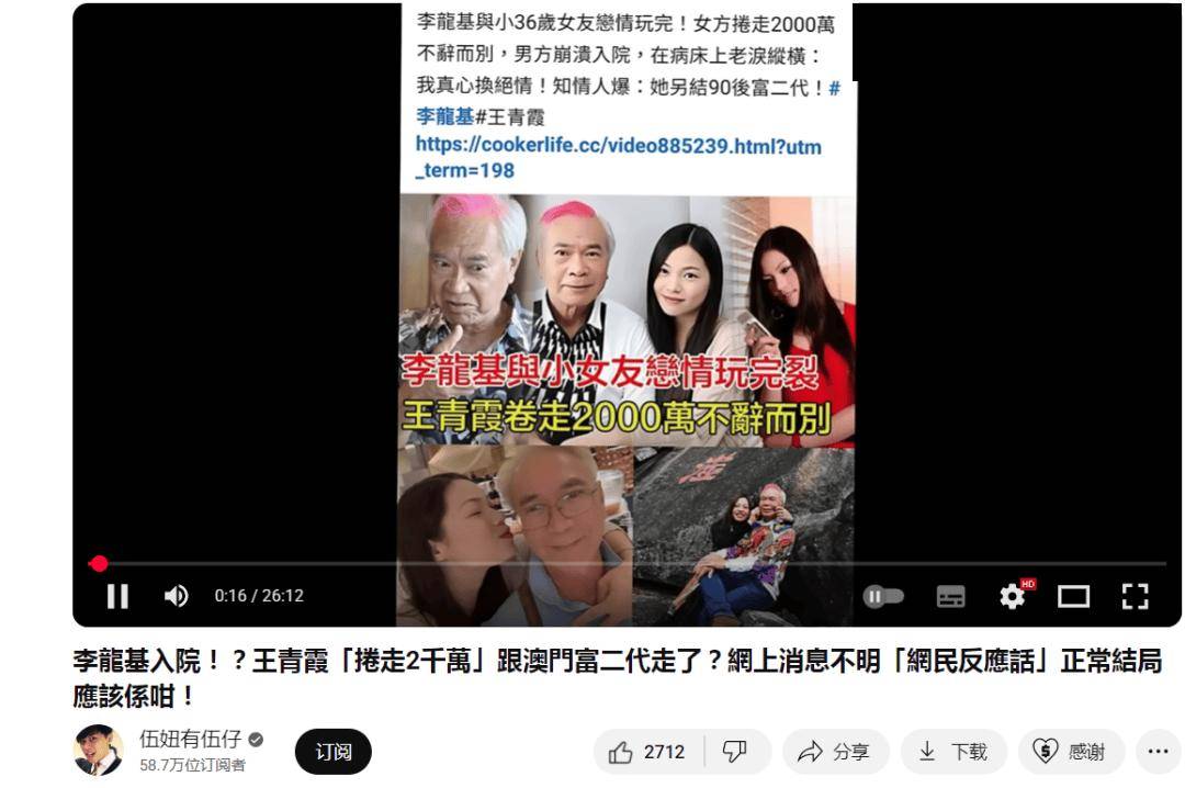 近期有传言声称二人感情出现裂痕,甚至造谣王青霞搭上澳门博彩业富二代,还曝光李龙基手握多套房产、身家超40亿,又说李龙基寻找妻子时失联,说得有模有样。